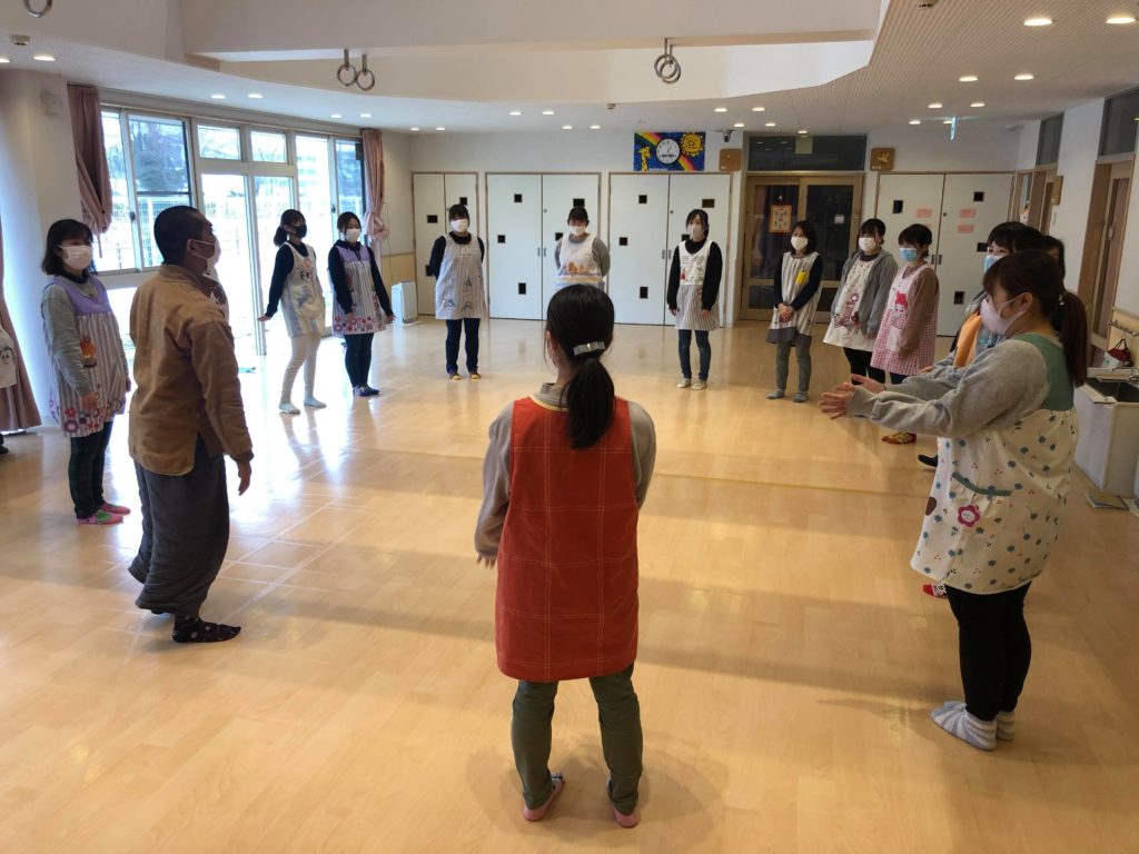 1/28、大和町すぎのこ保育園の子育て支援事業の今年度最終回では「ぼたもち堂のパフォーマンス」と「発達とあそびのお話会」の豪華版。そして、午後からは保育士のみなさんの職員研修でお話しさせていただきました。
