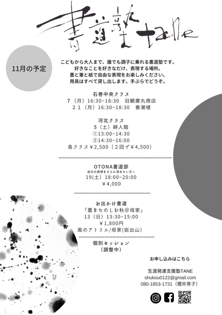 ※お出かけ書道については、お申し込みは母家に直接お知らせください。
