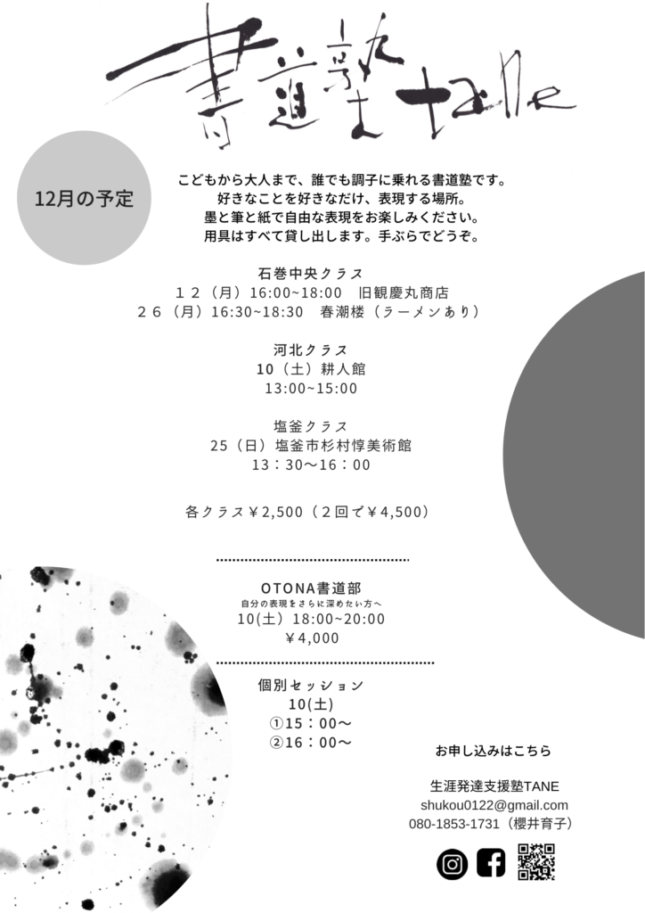 今月から、塩釜での書道クラスを定期的にやってみようかなあと思います。いろいろ移動して行きますので、お会いできるタイミングでいろいろなかたと関われますように。